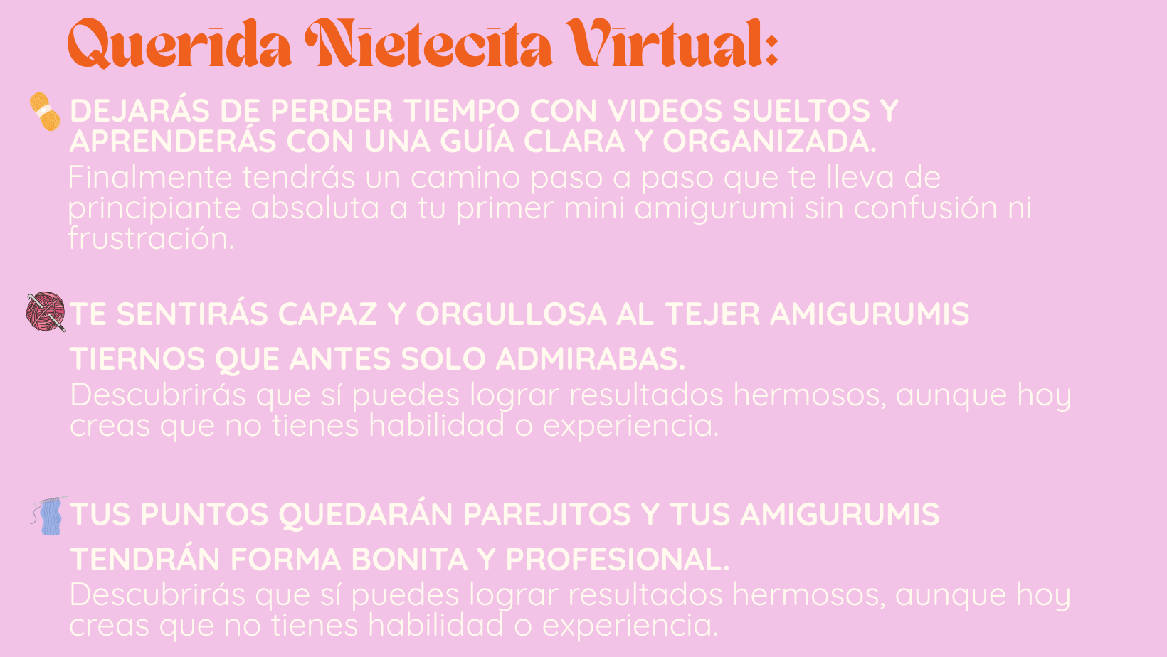 Quiero que te sientas cuidada, guiada y orgullosa de lo que vas a tejer.